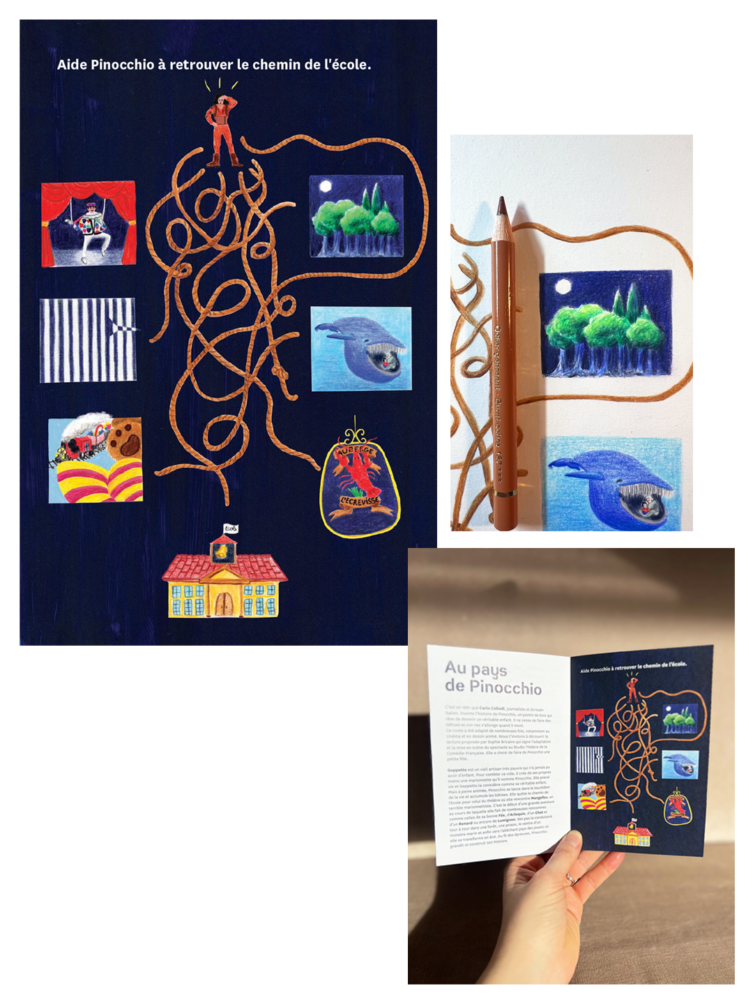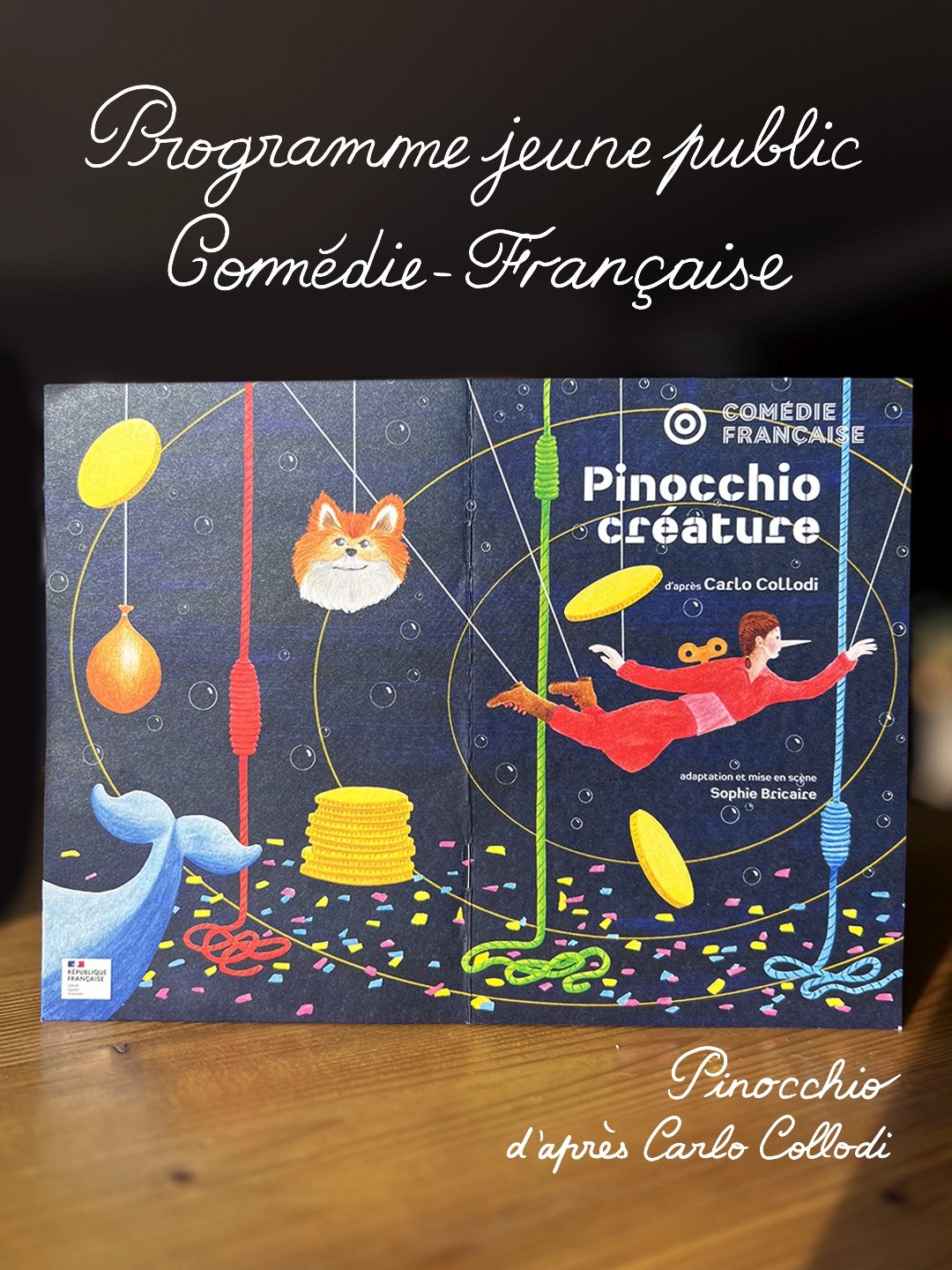 J’ai eu le plaisir de réaliser les illustrations du programme jeunesse de Pinocchio, après celles de l’Avare, en 2023. J’adore le résultat, mais je suis surtout honorée par la confiance renouvelée de l’équipe de cette institution que j’aime tant !